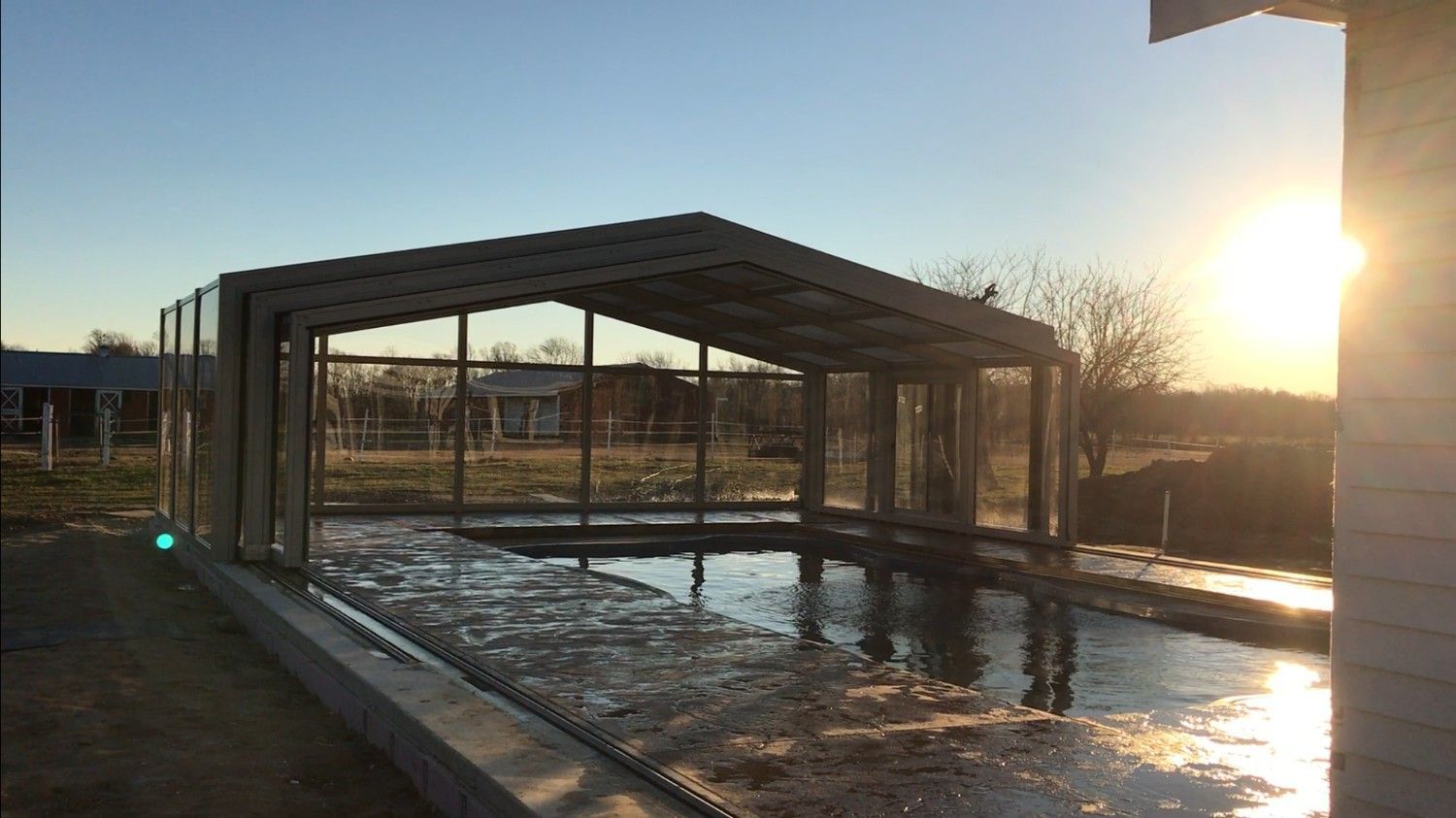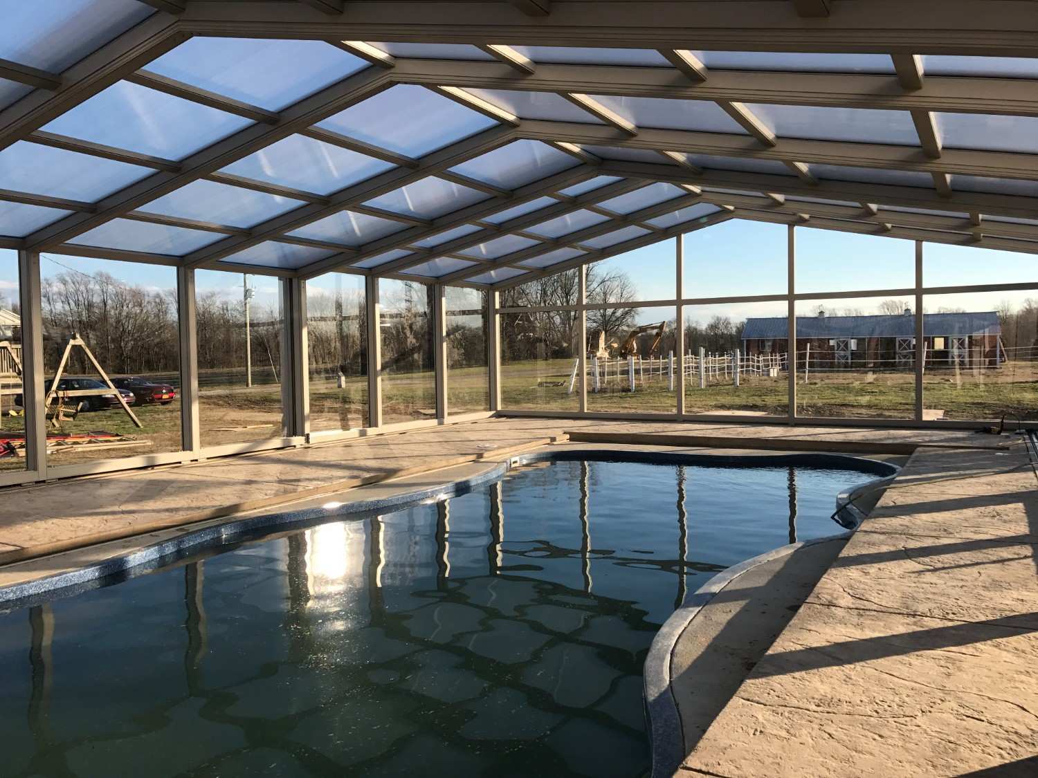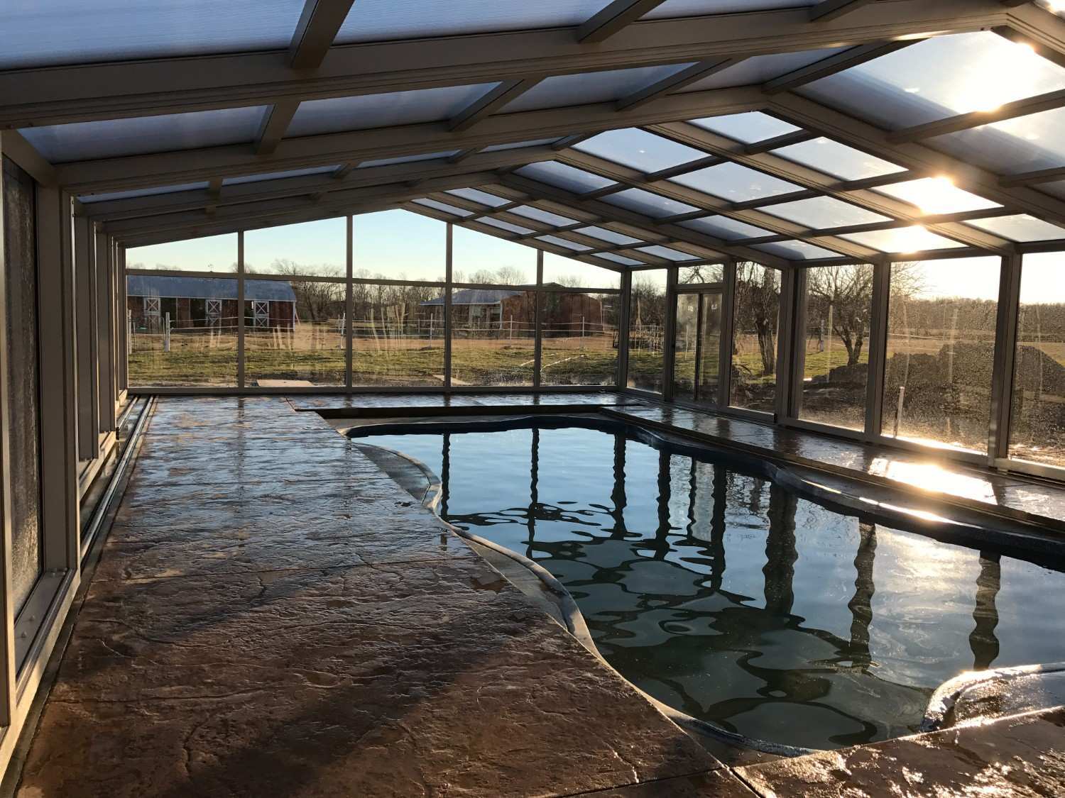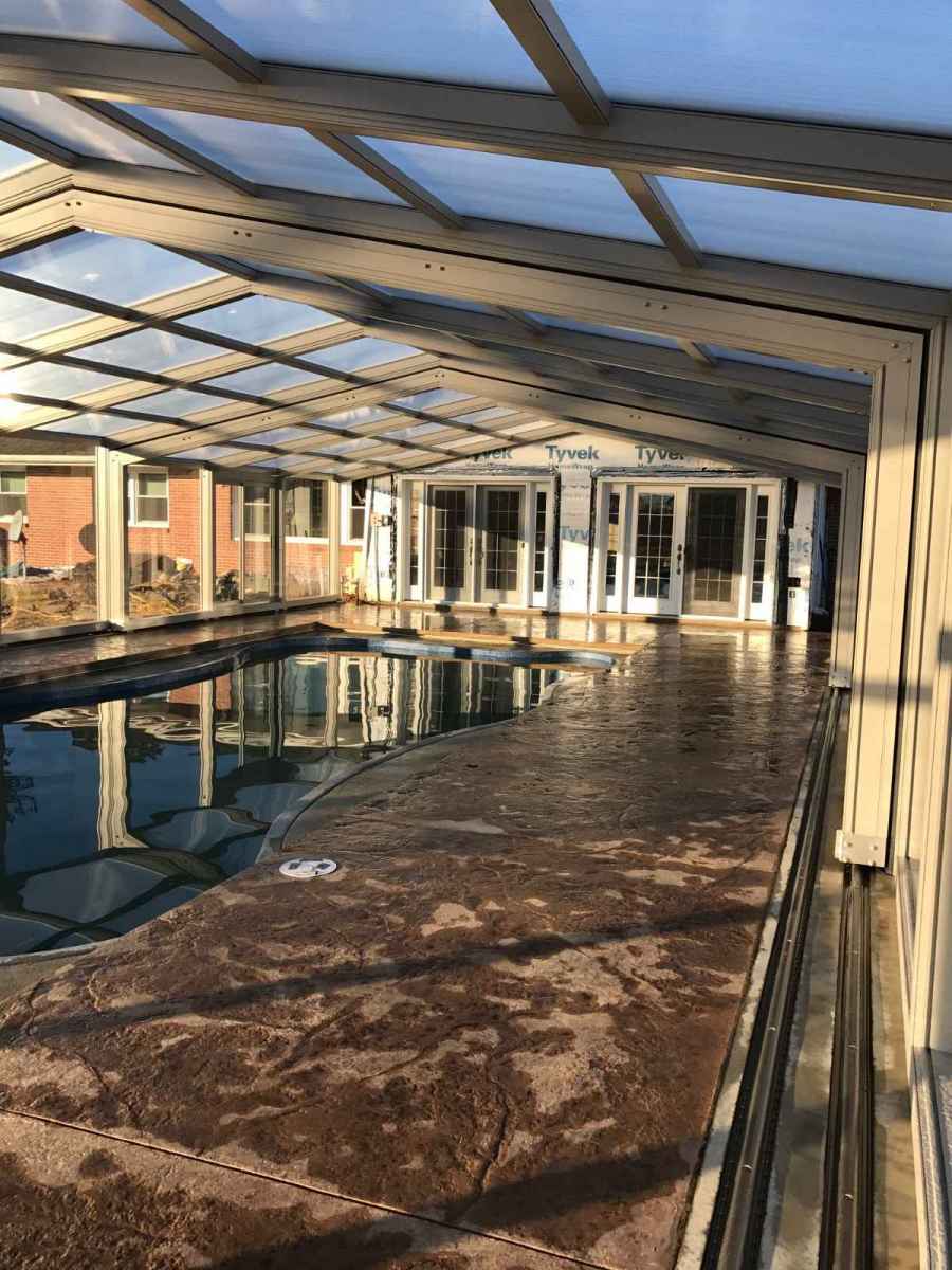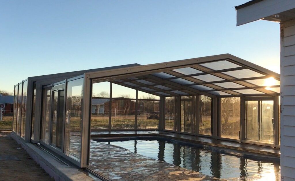 The enclosure transforms the pool into a year-round destination for recreation and relaxation.