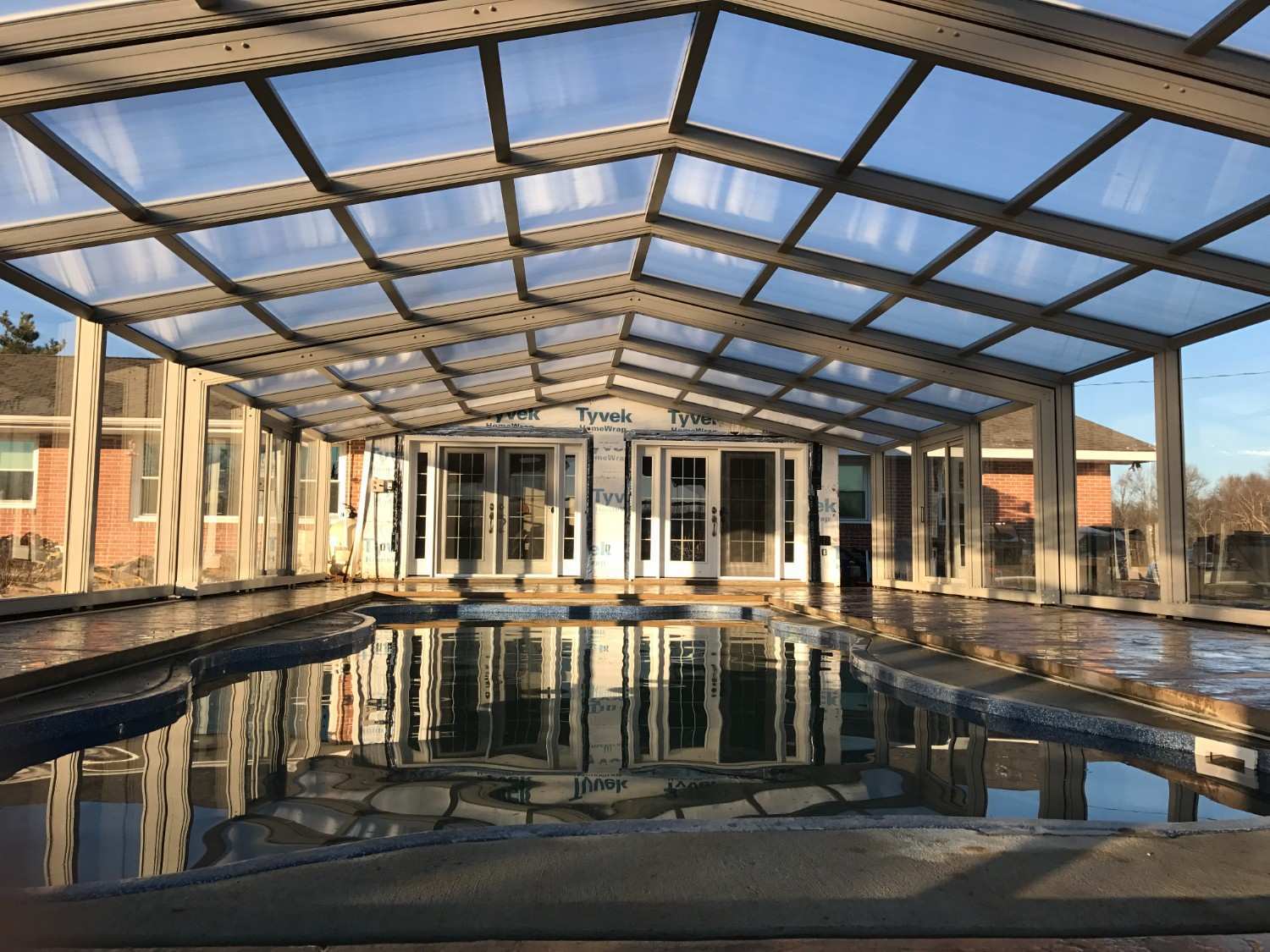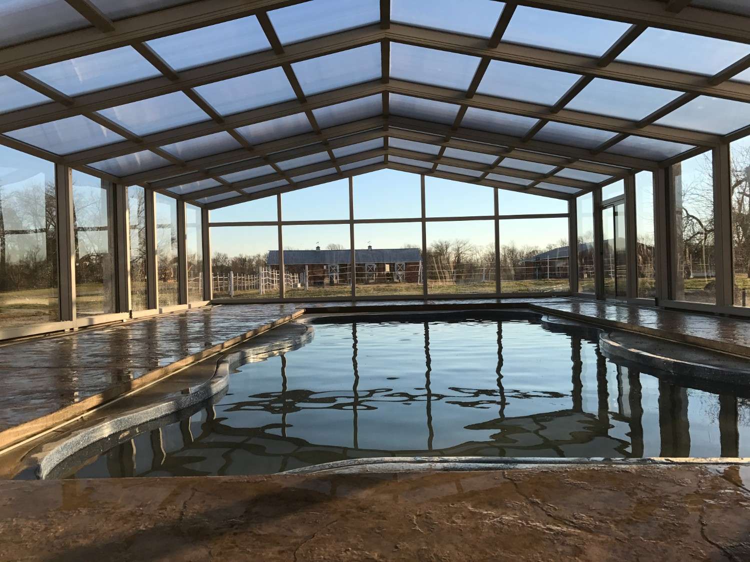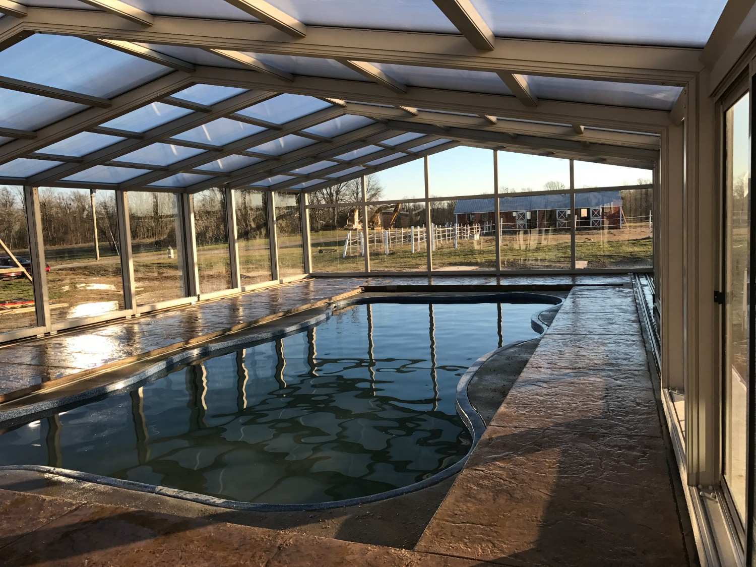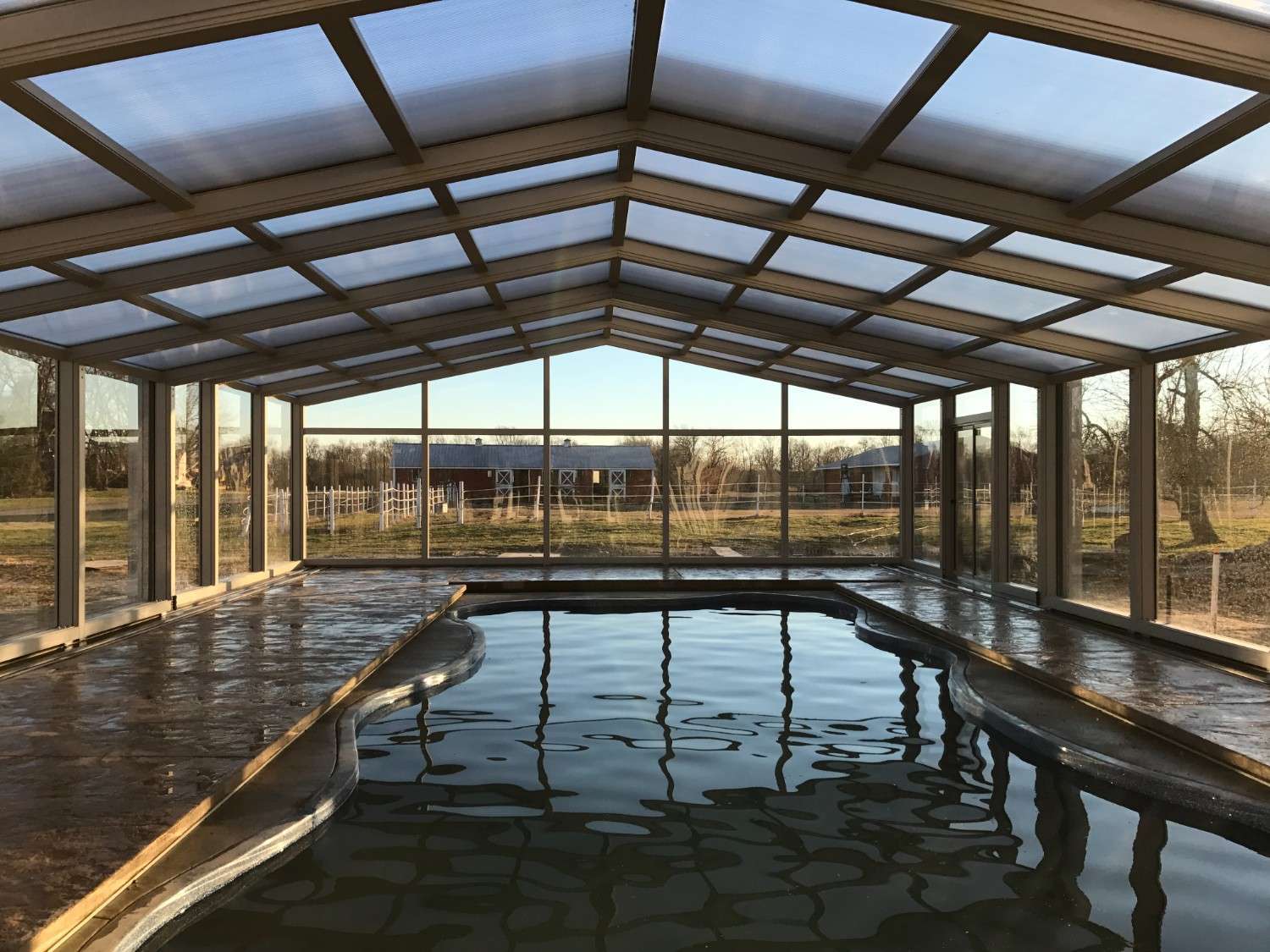 The enclosure transforms the pool into a year-round destination for recreation and relaxation.