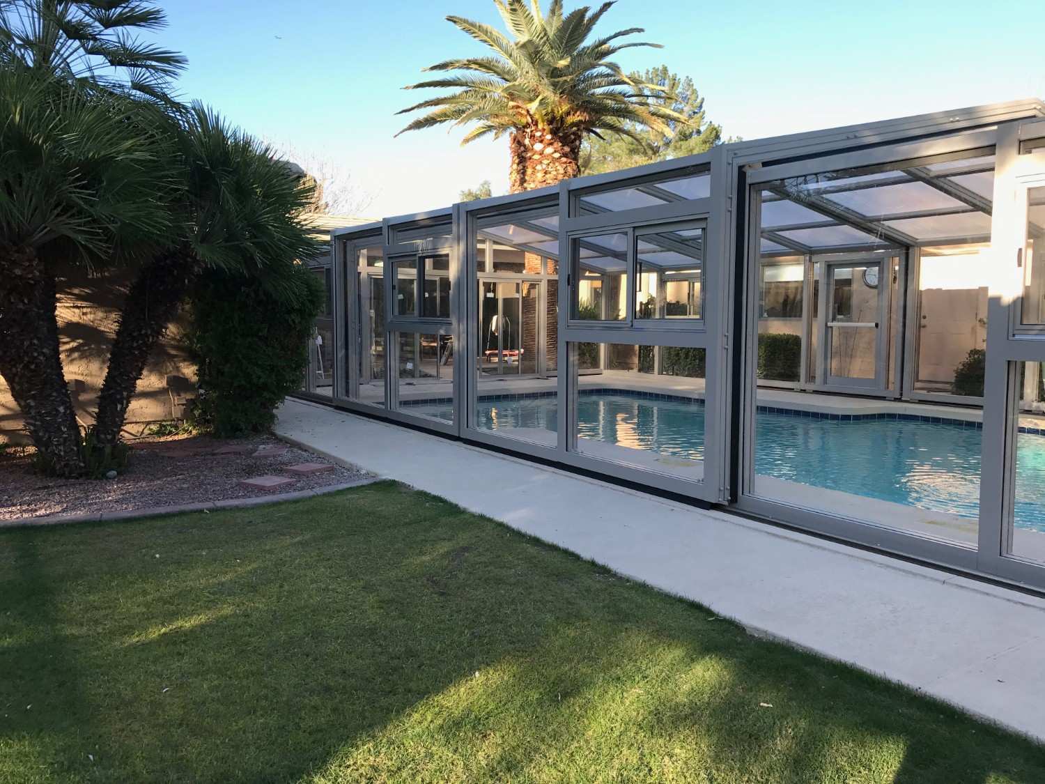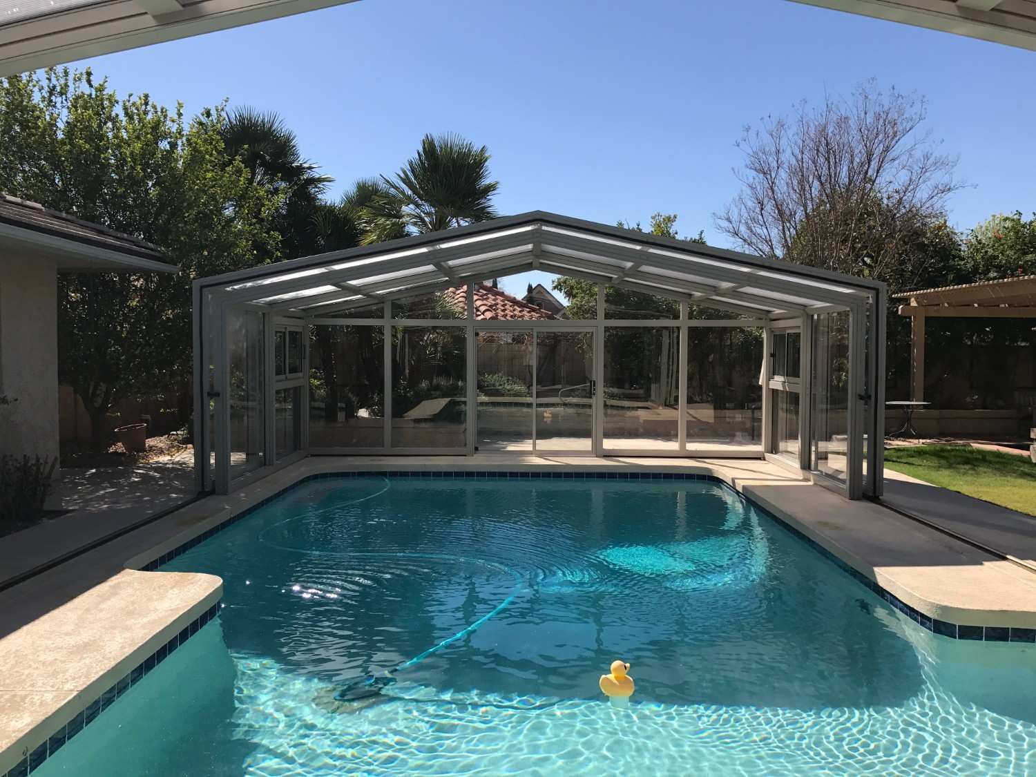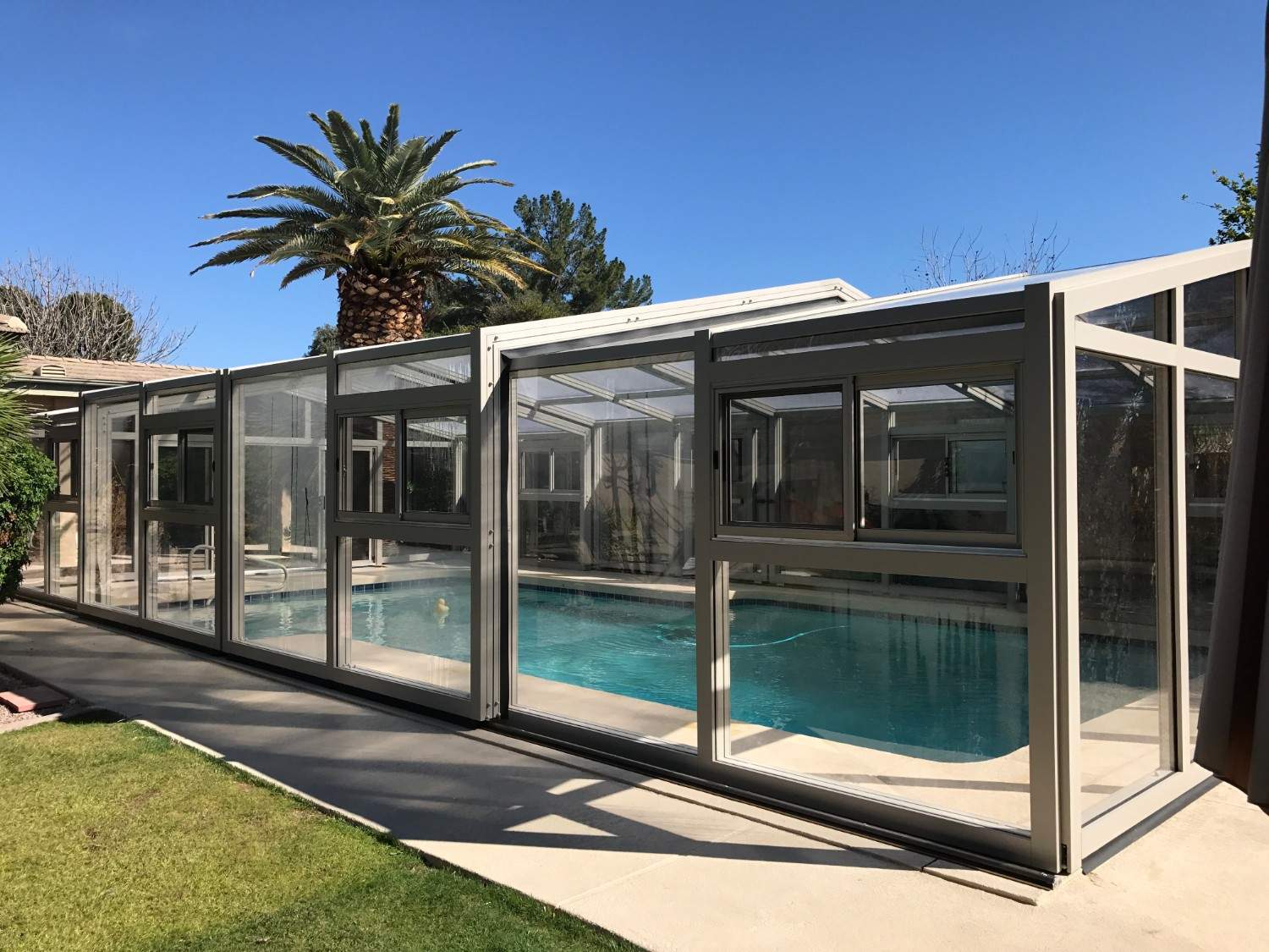 The protected environment allows the homeowners to enjoy their pool throughout more of the year.