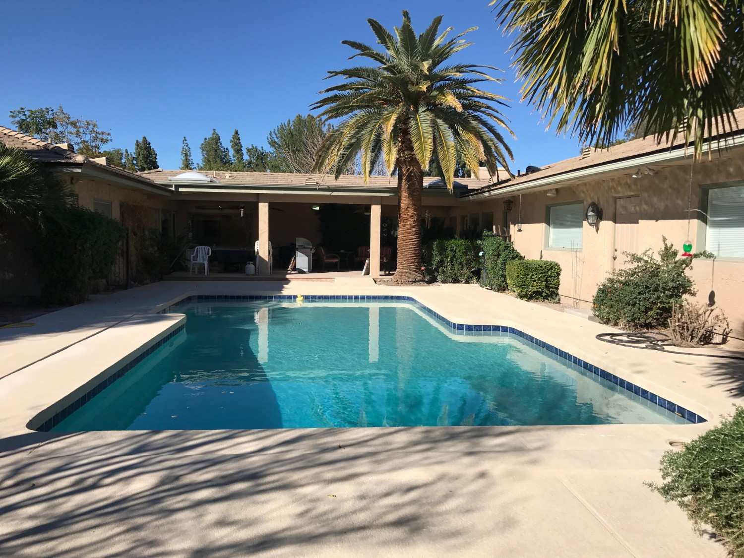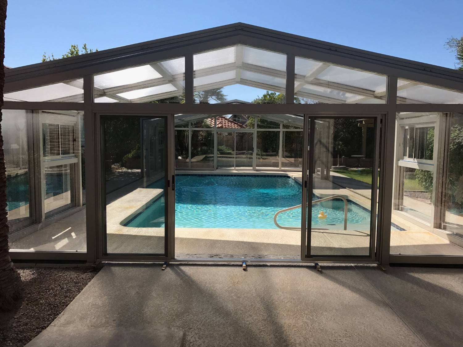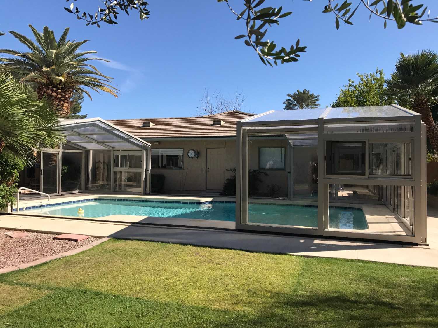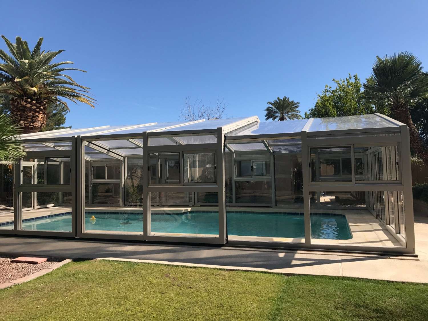 The protected environment allows the homeowners to enjoy their pool throughout more of the year.