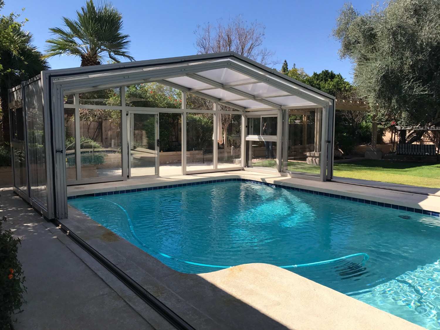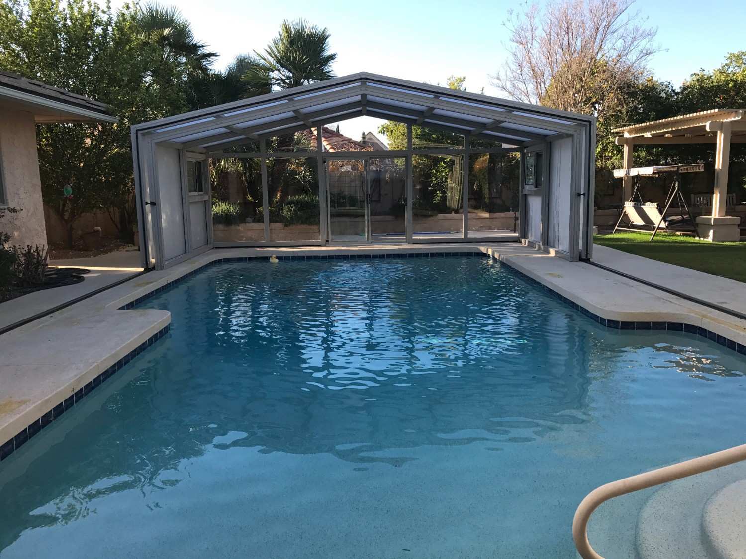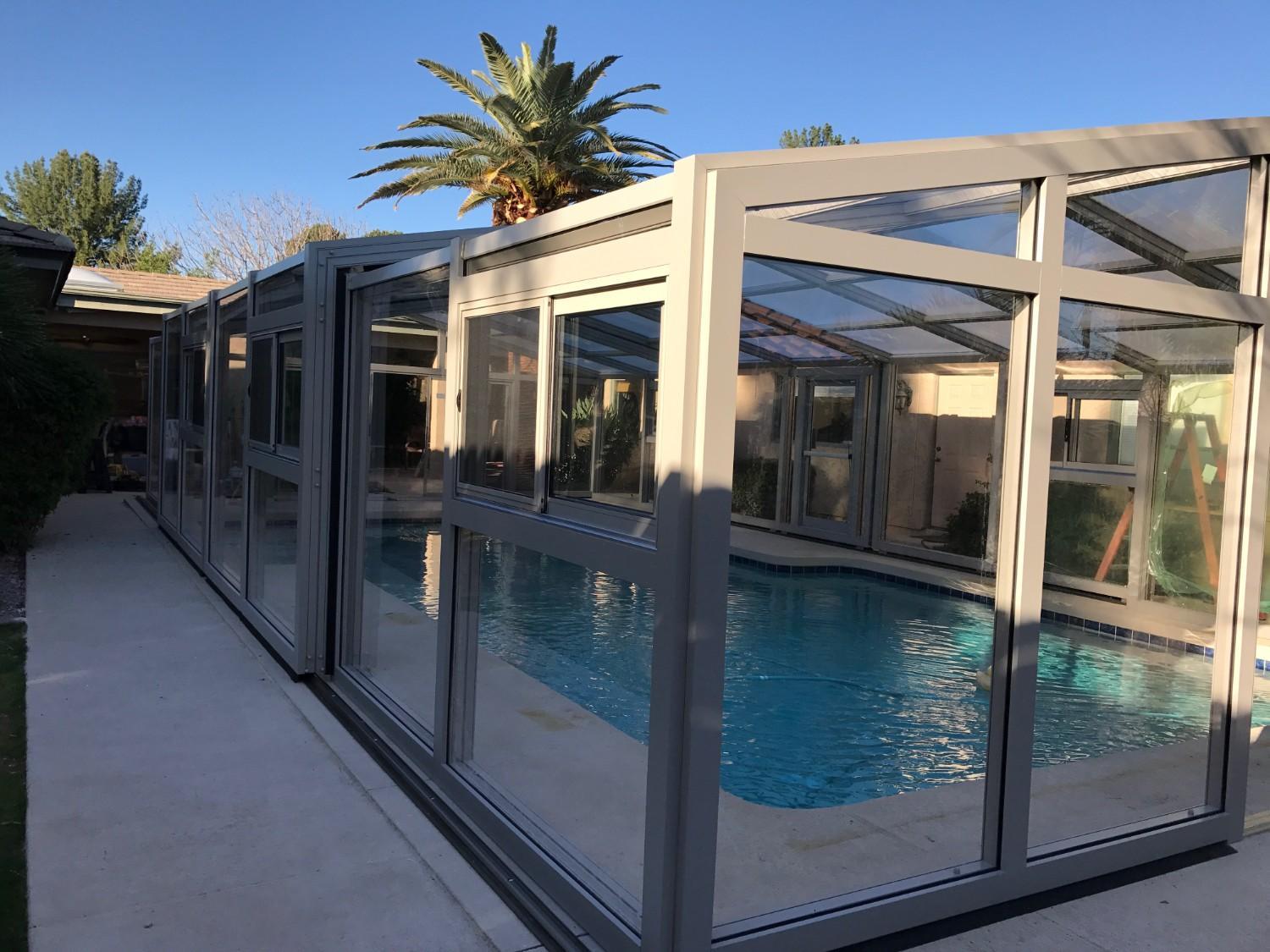 Cabrio Structures installed a custom CabrioEnclosure designed to provide both protection and flexibility for the pool area.
