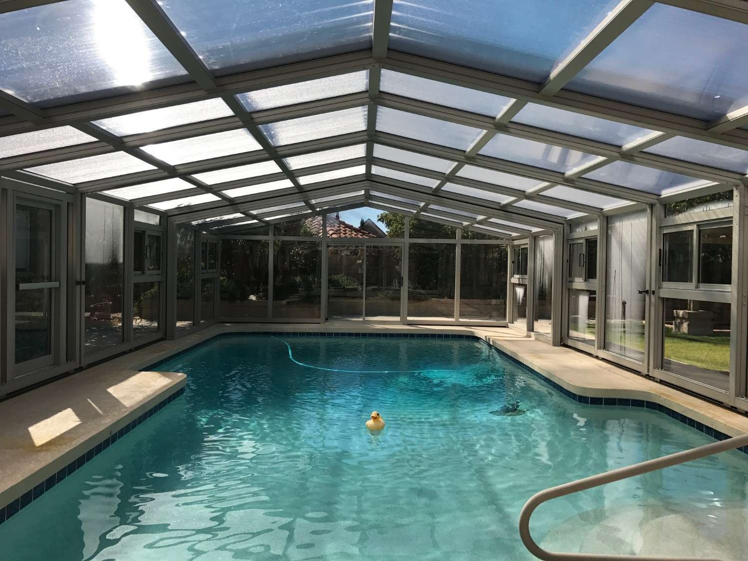 The homeowners wanted to create a pool environment that would provide protection from the elements while maintaining clear views and natural light.